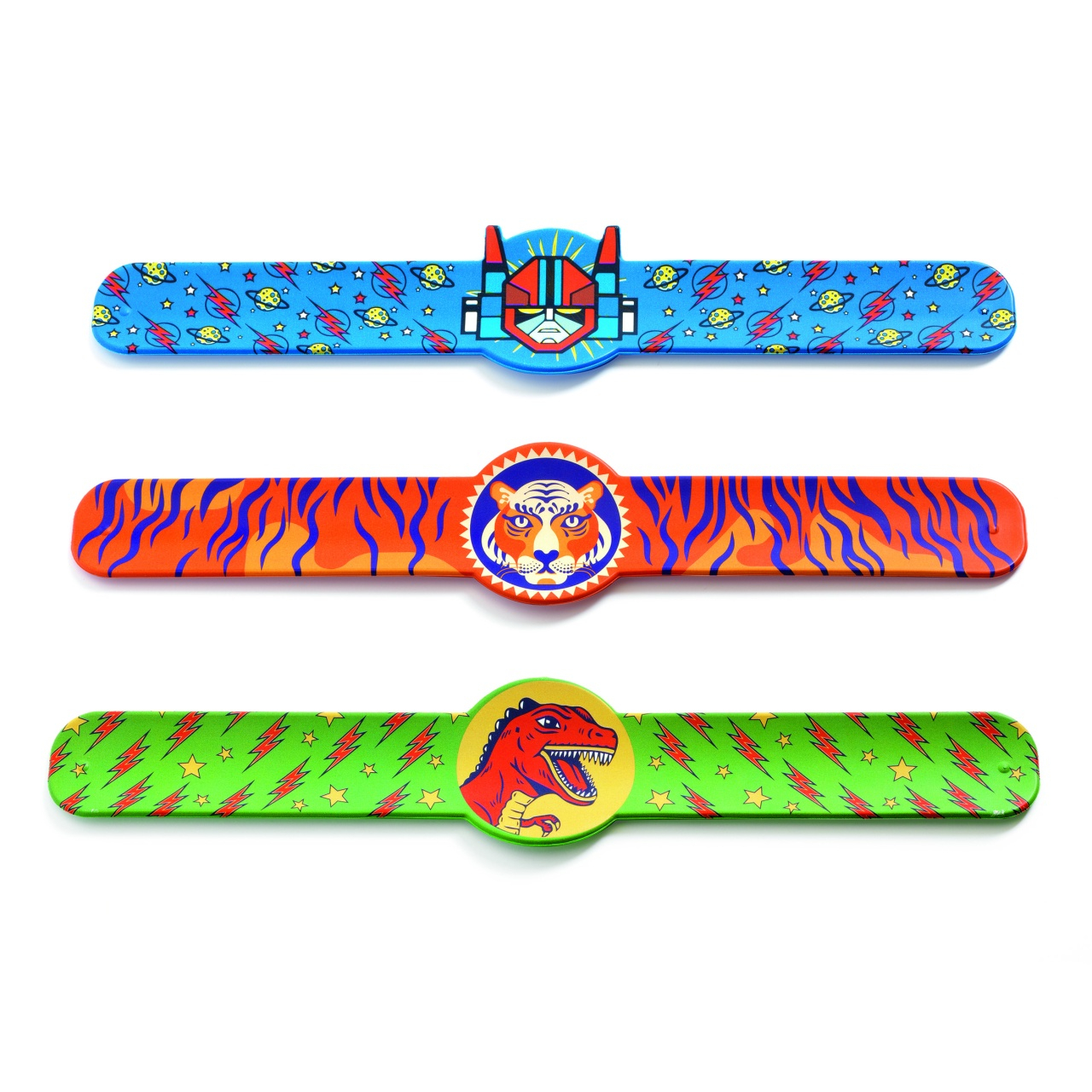 Brățară slap Djeco – Robot, dino, tigru | Accesoriu cool pentru baieti aventurieri Brățără colorată și veselă tip „slap” se fixează ușor pe încheietura mâinii și devine imediat accesoriul preferat! Disponibilă în trei variante – Robot, dino, tigru – aduce un plus de stil și distracție oricărei ținute. ✨ Caracteristici: Ușor de pus – doar o atingi de încheietură și se înfășoară singură Material rezistent și confortabil (metal acoperit cu silicon) Potrivită pentru cadou - accesoriu trendy pentru copii 🌱 Ambalaj din materiale certificate FSC® – carton și hârtie sustenabile Dimensiuni: 21 × 2,5 × 0,2 cm Vârsta recomandată: +5 ani Producător: Djeco, Franța 🇫🇷