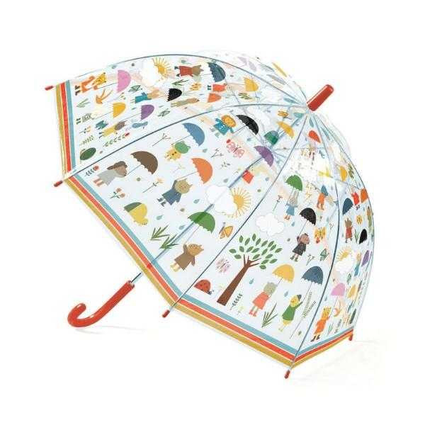 Umbrela in ploaie O umbrelă ilustrată lustrată cu caractere prietenoase „afară în ploaie”. Designul său transparent îi permite copilului să vadă pe unde merge, iar deschiderea manuală prevăzută cu un sistem de protecție înseamnă că poate fi deschisă și închisă fără să ciupească degetele. Un accesoriu colorat, ideal pentru a însenina ieșirile pe ploaie! Structura din fibra de sticla îi dă flexibilitate si rezistență. Mecanism manual de deschidere cu sistem de protecție pentru a preveni ciupirea degetelor. Dimensiune conceputa pentru copii. Include: umbrelă de plastic cu finisaj textil, 8 nervuri din fibră de sticlă, cadru din fibră de sticlă cu deschidere manuală prevăzută cu sistem de protecție și mâner din plastic mat, închidere cu capsă. Dimensiuni la deschidere: 68 x 70 cm (diametru). Articol decorativ. Nu este o jucărie! Producător: Djeco, Franța