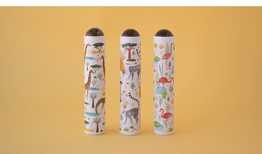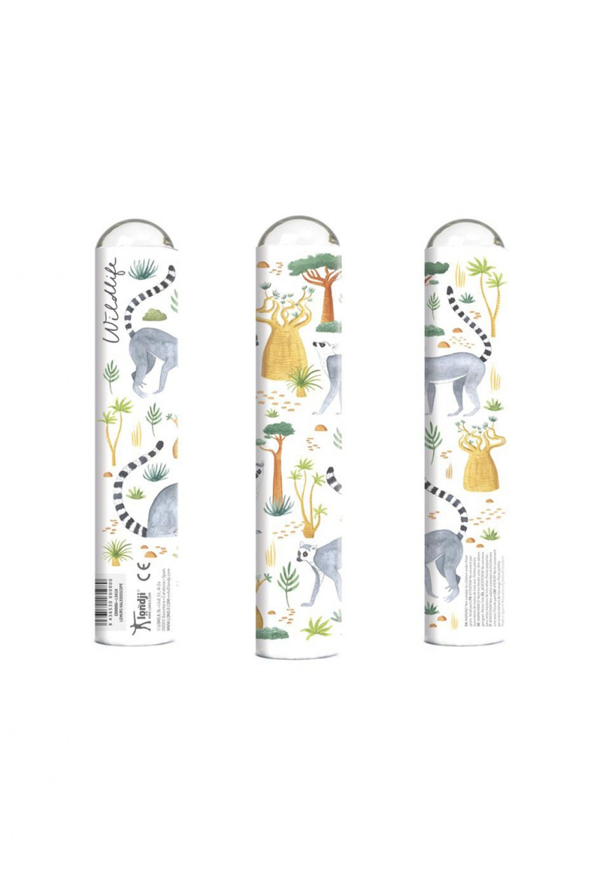 Caleidoscop Lemuri Jucărie optică, descompune şi multiplică imaginea în mii de bucăţele. Spre deosebire de caleidoscoapele clasice, care fac modele din bucățelele mici si colorate aflate în interiorul instrumentului, teleidoscopul face modele caleidoscopice din obiectele din jur, cu ajutorul oglinzilor din interior, multiplicându-le de nenumărate ori. Confecționat din materiale non-toxice, cu vopsele non-toxice, conform reglementărilor EN71&ASTM. Vârsta recomandată: 3-103 ani. AVERTISMENT: Contraindicat copiilor sub 3 ani, conține piese mici, pericol de sufocare. A se utiliza sub directa supraveghere a unui adult. Producător: Londji, Spania.