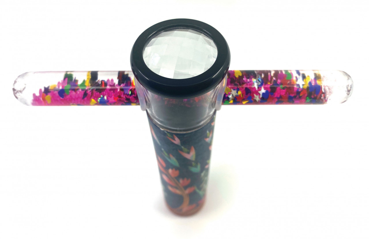 Caleidoscop cu tub lichid Ocean Descoperă o lume plină de lumină și culoare, cu forme schimbătoare. Sclipiciul și nisipul colorat se rotesc și curg în tub formând modele impresionante. Vârsta recomandată: + 6 ani. Confecționat din plastic și hârtie presată. Conform standardelor de siguranță EN71 și ASTM. Avertisment: Contraindicat copiilor sub 3 ani, conține părți mici. A se utiliza sub stricta supraveghere a unei persoane adulte. Producător: Svoora, Grecia.