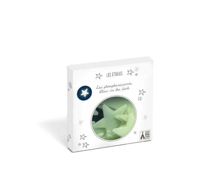 Decor fluorescent Stele Un cer înstelat care trebuie creat cu o multitudine de stele care strălucesc în întuneric (3 dimensiuni diferite) lipite de pereți și tavan. Se încarcă la lumina zilei și strălucesc în întuneric, astfel încât copiii să poată adormi cu capul în stele. Articol decorativ. Nu este jucărie. Include: 65 de piese din plastic care strălucesc în întuneric, bandă dublu adezivă. Se incarcă la lumina zile și luminează noaptea. AVERTISMENT : Contraindicată lipirea pieselor în locuri accesibile copiilor sub 3 ani. Producător: Djeco, Franța.