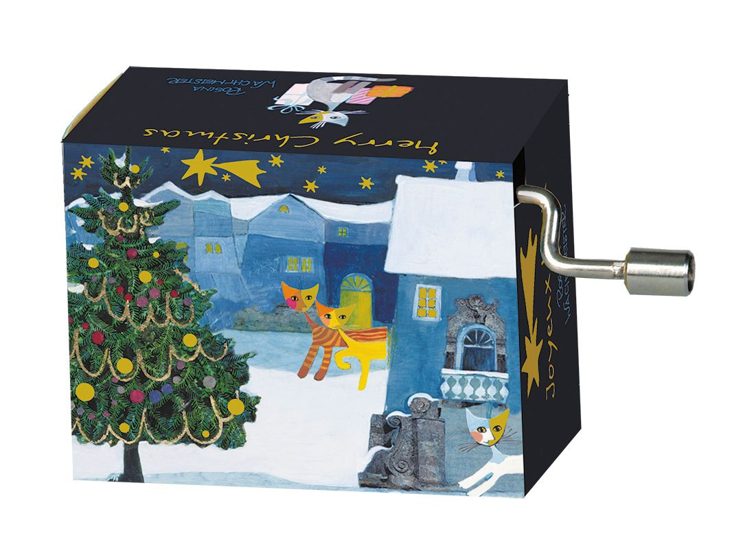 Flașneta Sărbători cu pisici design Rosina Wachtmeister Flașnetă cu mecanism confecţionat din lemn şi metal, având carcasa din carton cu detalii aurii. Melodie: Jingle Bells Design Rosina Wachtmeister, Natale in Neve Acest articol nu este o jucărie. Producător: Fridolin, Germania.