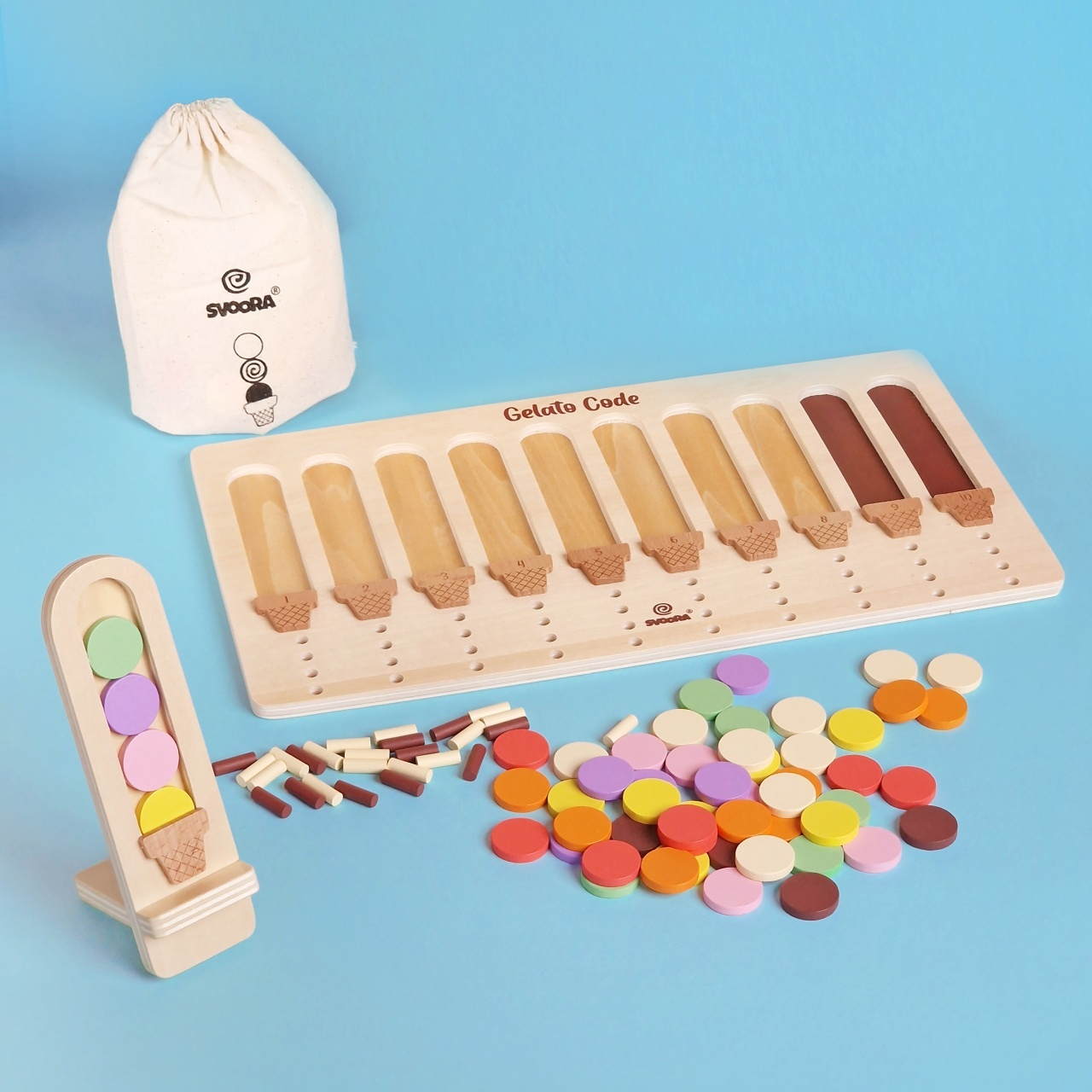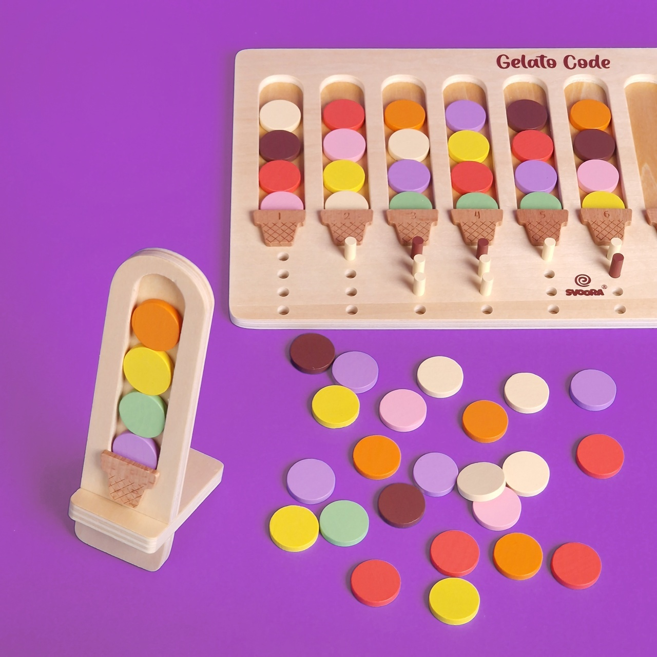 Joc de strategie cu inghetata Este o provocare delicioasă de logică și deducție care transformă jocul într-o adevărată experiență... cu aromă de înghețată! Un jucător alege în secret o combinație de arome de inghetata, iar celălalt trebuie să o ghicească. Dar atenție: fiecare încercare greșită oferă indicii prețioase — iar timpul trece! Scopul? Să descoperi combinația corectă în cât mai puține încercări și să devii maestrul suprem al inghetatei ! Jocul include variante atât ușoare, cât și dificile, pentru jucători de toate vârstele. Dimensiune : 32.5 × 19 × 5 cm Vârsta recomandată: + 6 ani. C onfecționat: lemn de fag, lemn de ienupăr, placaj. Conform celor mai stricte reglementări de siguranță EN71 și ASTM. AVERTISMENT: Contraindicat copiilor sub 3 ani. Conține piese mici care pot fi înghițite. Pericol de sufocare! Producător: Svoora