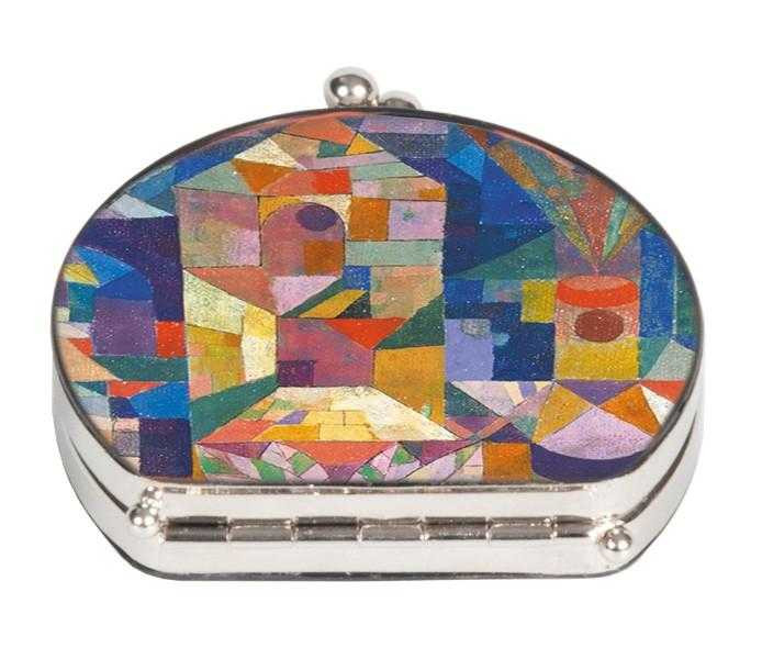 Oglindă de buzunar Oglindă dublă (normală și care mărește) cu carcasa metalică și cu suprafață textilă imprimata cu picturi celebre. Potrivită pentru poșetă. Dimensiuni: aprox. 7 x 7,5 x 2,5 cm. AVERTISMENT: Nu este jucărie! Contraindicată copiilor sub 3 ani. A se utiliza sub directa supraveghere a unei persoane adulte. Producător: Fridolin, Germania.