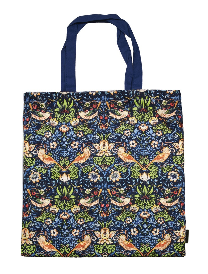 Sacoșă design William Morris Strawberry Thief Sacoșă pentru cumpărături, ușoară și foarte practică. Se spală în mașina de spălat la temperatura de 30C. Dimensiuni: 38 x 40 cm (+ 20 cm mâner). Confecționată din textil 100% poliester. AVERTISMENT: Nu este jucărie. Articol decorativ. Producător: Fridolin, Germania.