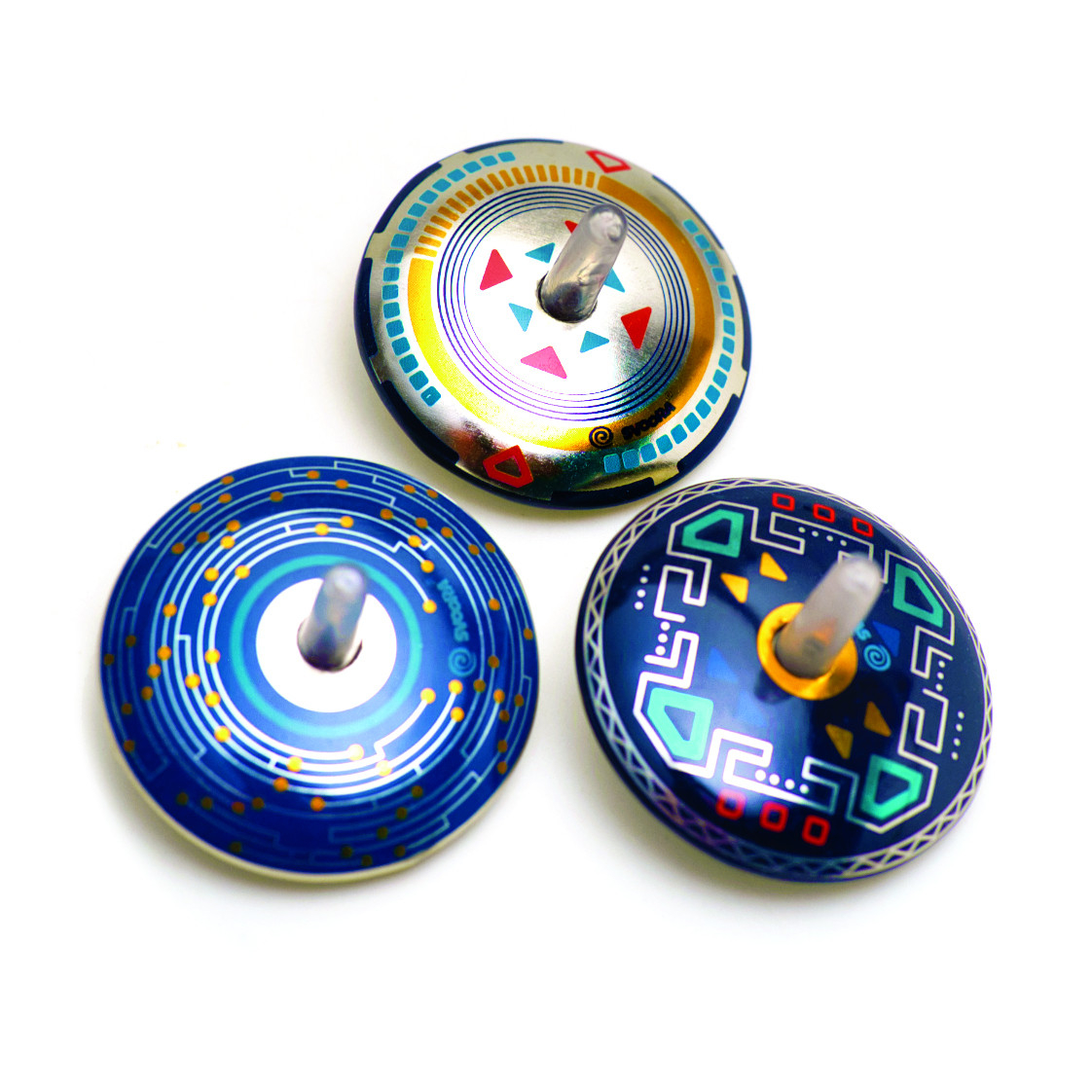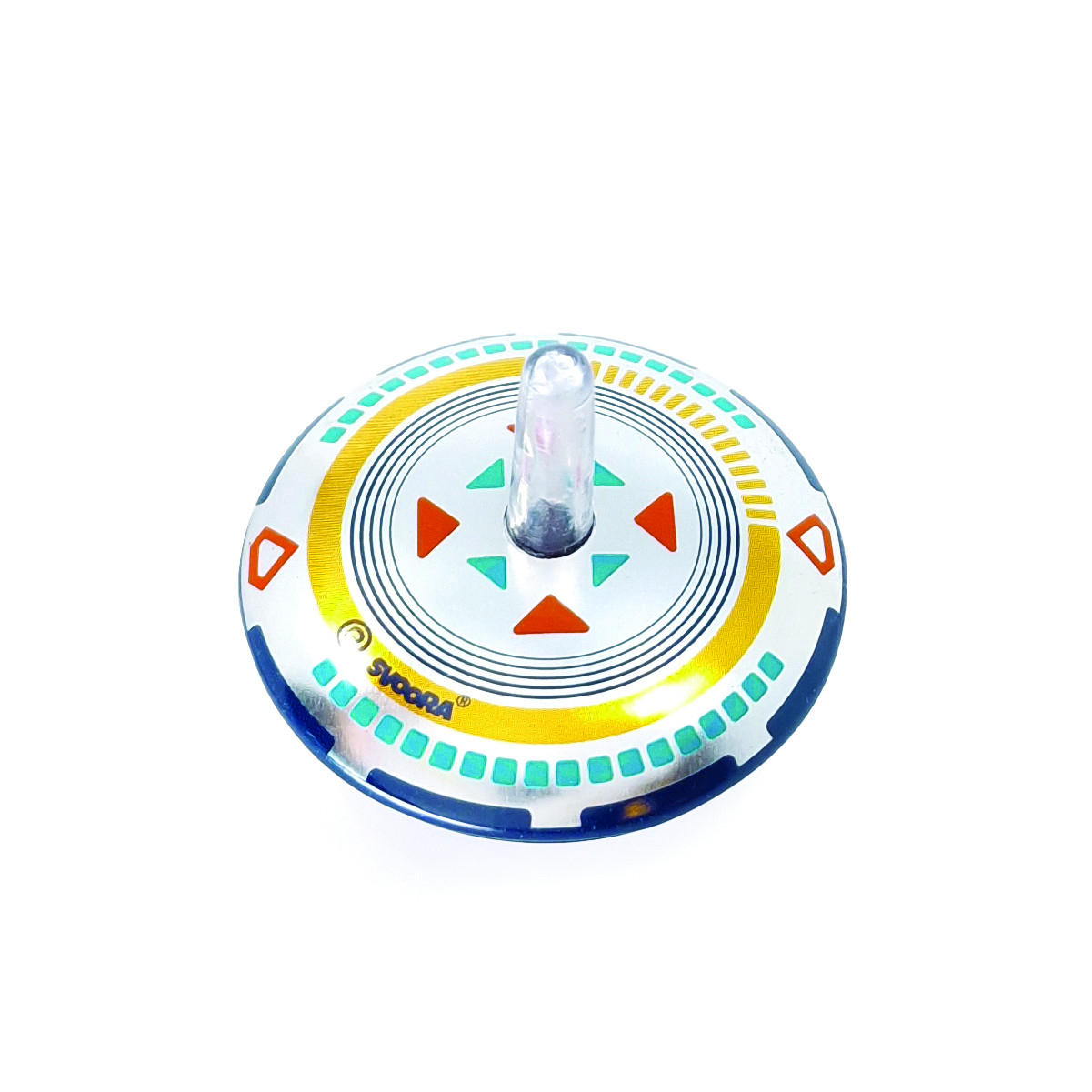 Titirez retro din metal Cât de repede se poate roti un titrez? Titirez metalic cu modele de inspirație Hi-tech, cu 3 ilustrații diferite, pline de detalii metalice, culori vibrante și dispoziție jucăușă! Învârte-l cât poți de tare ca lumea din jurul lui să zboare. Dimensiune titirez 6 x 6 x 4 cm. Confecționat din metal și plastic, conform reglementărilor EN71 & ASTM. Vârsta recomandată: + 4 ani. Avertisment: Contraindicat copiilor sub 3 ani. A se utiliza sub stricta supraveghere a unei persoane adulte. Producător: Svoora, Grecia.