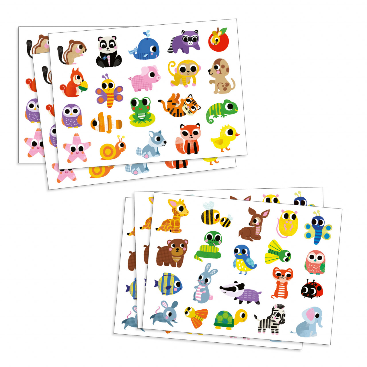 Abtibilduri Pui de animale Peste 100 de autocolante special concepute pentru cei mici cu vârsta de 18 luni și peste. Autocolante mari, cu tematica animale puiuți. Formele simple le fac foarte ușor de manevrat pentru mâinile mici. O introducere distractivă în meșteșugurile de colaj pentru copiii mici! O primă colecție de stickere pentru cei mici. Conținut: 120 de autocolante. Dimensiune coala autocolante: 31x23,5 cm. Vârsta recomandată: +18 luni. Confecționate din hârtie și carton certificate FSC®. AVERTISMENT: Contraindicat copiilor mai mici de 3 ani. Conține piese mici. Se recomandă supravegherea copilului de către un adult în timpul jocului. Citiți cu atenție eticheta produsului înainte de a înmâna jucăria copilului. Producător: Djeco, Franța