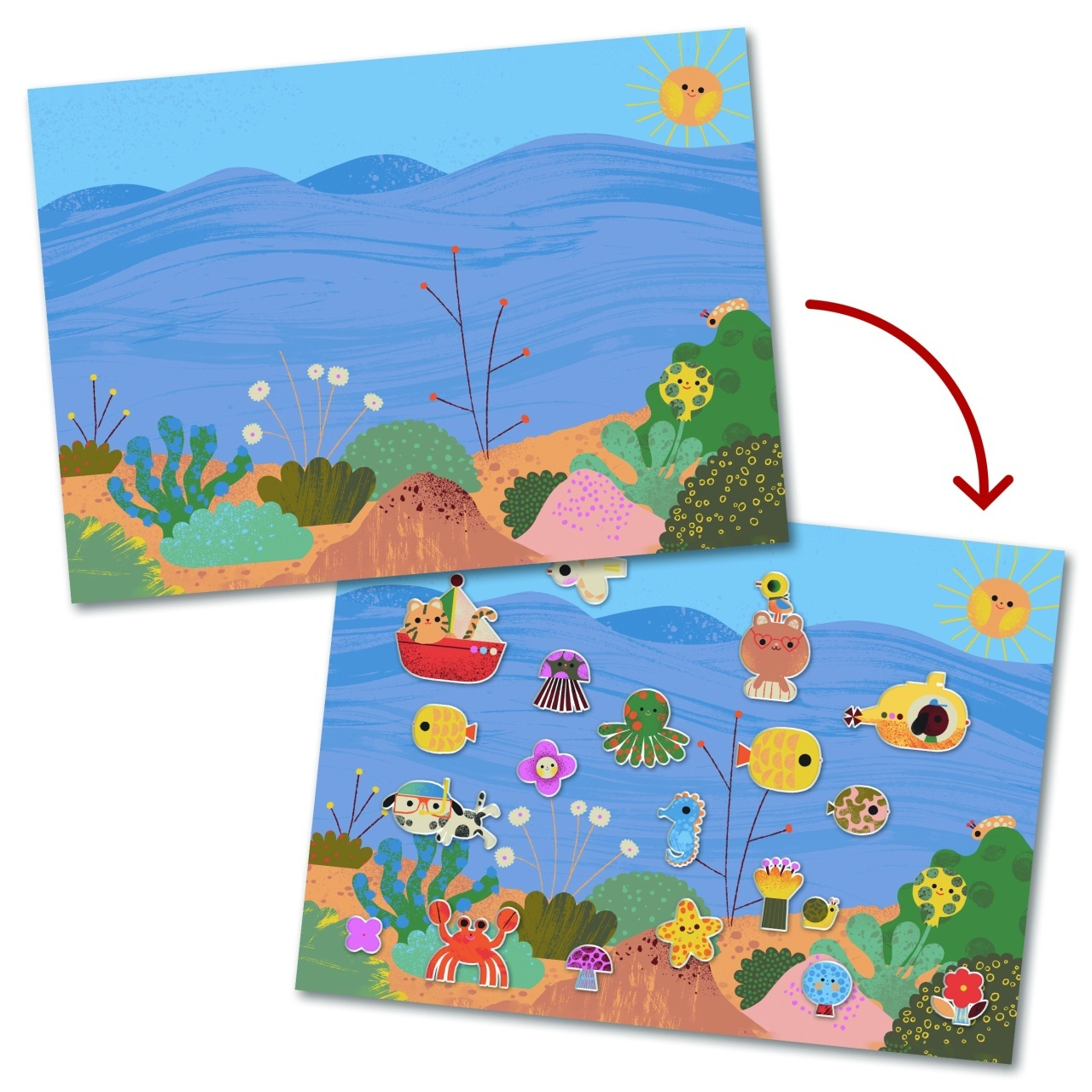 Djeco Abtibilduri repozitionabile La mare si la tara, Djeco