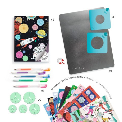 Joc creativ de desenat spirale Atelier cu spirale. Imaginează-ți un spațiu de joacă plin de forme spiralate, cercuri colorate și buline vesele - apoi încearcă să le reprezinți. O activitate clasică, cu o tușă proaspătă by Djeco, cu instrumente inteligente pentru a face spirale într-un mod plăcut și ușor. Copiii așază o foaie pe placa de metal, apoi așază cadrul magnetic deasupra și introduc rotița. Apoi desenează cercurile, creând cu ușurință rozete fără a fi nevoiți să țină rama nemișcată. Spiralele se pot realiza ulterior pe orice alt desen. Posterul mare arată combinația de echipamente necesare pentru fiecare spirală. Sunt 10 teme pentru a învăța să desenezi cu spirale. Cutie de depozitare cu închidere cu elastic pentru păstrarea echipamentului. Conținut: 1 bloc de 30 de coli ilustrate (21 x 28 cm), placă de metal (21 x 28 cm), 2 rame magnetice care au rolul de a ține obiectele pe loc, 5 rotițe din plastic de dimensiuni diferite, 5 pixuri cu gel, poster care explică cum se creează spirale, broșură color cu exemple. Vârsta recomandată: 7-12 ani. Confecționat din materiale certificate FSC®. AVERTISMENT: Contraindicat copiilor sub 3 ani. Conține părți mici. Se recomandă supravegherea copilului de către un adult în timpul jocului. Producător: Djeco, Franţa. https://www.youtube.com/watch?v=5MSSTvFi9gQ&list=PLf4YUEpnRANEUU0FXwwMLSn51eHXj_Z20&index=36