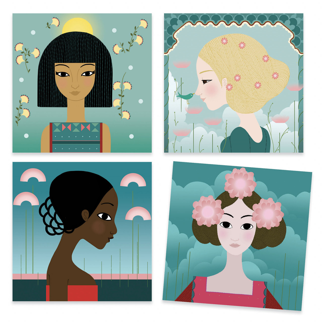 Joc creativ Modele si decoratiuni Un set de creație original cu ștampile pentru copii, pentru a compune modele și a decora ținutele și părul unor prințese din întreaga lume. Copiii potrivesc modelele și le așază cu precizie datorită ștampilelor transparente. Pe măsură ce munca avansează, fetele sunt împodobite cu ornamente subtile și rafinate. Ștampilele transparente le permit copiilor să își vadă munca și să plaseze imaginile cu precizie. Bloc de poziționare gros și greu pentru a lăsa amprenta clară, neblurată. Laveta de curățare pentru a îngriji accesoriile. 4 cerneluri colorate ușor de spălat, inclusiv cerneală aurie. Cutie de depozitare cu închidere elastică pentru a depozita accesoriile după terminarea activității. O broșură explicativă detaliază pas cu pas activitatea. Conținut: 4 planșe de decorat (20 x 20 cm), foaie cu ștampile moi și transparente, bloc de poziționare acrilic transparent, lavetă de curățare, 4 tușiere cu cerneală (alb, verde, roșu, auriu), broșură cu explicații pas cu pas în culori. Vârsta recomandată: 7 - 12 ani. Confecționat din hârtie și carton certificate FSC®. Producător: Djeco, Franța.