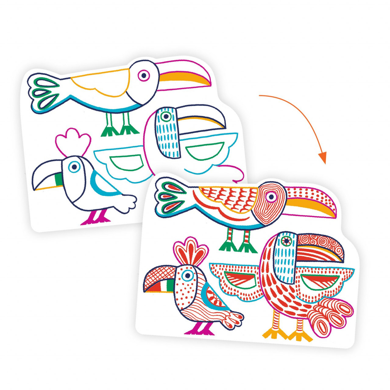 Joc de desenat pentru cei mici, Familii de animale Mapă cu 12 imagini care pot fi colorate cu un creion colorat jumbo, perfect pentru cei mici. Efect magic: creionul marchează doar anumite zone, descoperind modele și dezvăluind surprize! Creionul jumbo are mărimea perfectă pentru mânuțele celor mici Ambalaj practic și ușor de transportat. Dimensiunea planșelor 20 x 26 cm. Conținut: 12 planșe cu animale, creion colorat jumbo. Vârsta recomandată: 3-6 ani. Fabricat din hârtie și carton certificate FSC®. Conform reglementărilor EN71&ASTM. AVERTISMENT: Contraindicat copiilor sub 18 luni. Se recomandă supravegherea copilului de către un adult în timpul jocului. Producător: Djeco, Franța