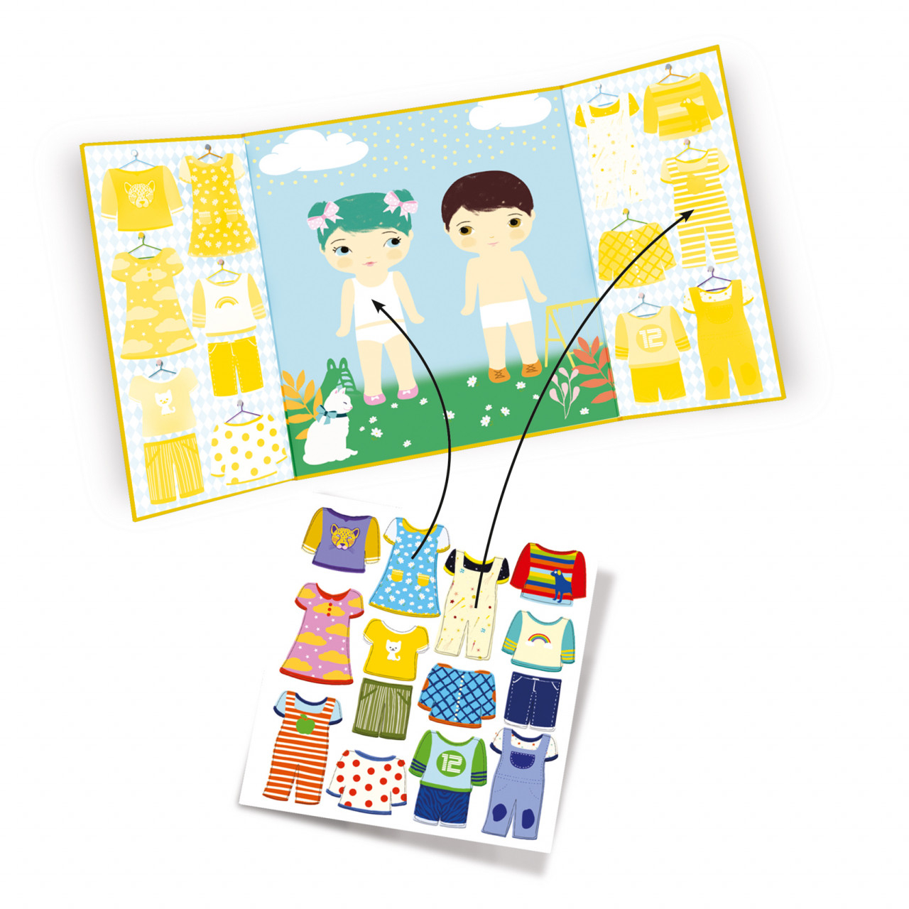 Djeco Planse cu abtibilduri repozitionabile Invatam sa ne imbracam, Djeco