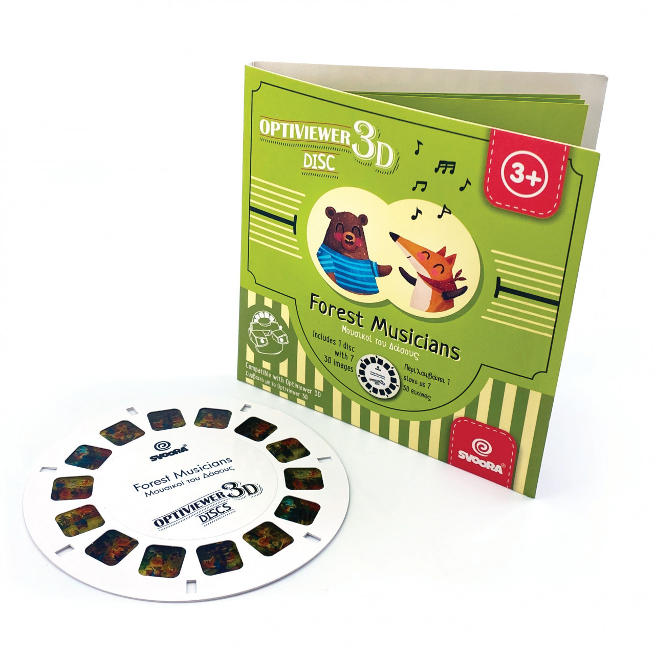 ROLA OPTIVIEWER 3D "Muzicieni" Haideți să explorăm o poveste uimitoare "Muzicieni"! 7 imagini 3D impresionante vin să extindă distracția 3D Optiviewer! Descrierea conținutului imaginilor poate da startul multor povești diferite care sporesc imaginația, dezvoltă observația, lărgesc creativitatea și ajută copilul să rămână concentrat pe un anumit subiect! Fiecare pachet de bobine include o mică broșură cu toate imaginile care pot fi explorate de părinți și copii simultan, sporind legătura dintre ei! Sunt disponibile 3 povești diferite compatibile cu 3D Optiviewer (#03005) și cu proiectoare similare. Introduceți discul, apoi apăsați maneta. În interiorul acestui dispozitiv de epocă, descoperiți o lume magică 3D. Imaginile sunt clare, fiind compuse din fotografii suprapuse care redau real obiectele. Vârsta recomandată: +3 ani. Confecţionată din carton și nylon. Conform reglementarilor EN71&ASTM. AVERTISMENT! A se folosi sub directa supraveghere a unei persoane adulte. Citiţi cu atenţie eticheta înainte de a înmâna jucăria copilului. Producător: Svoora, Grecia.