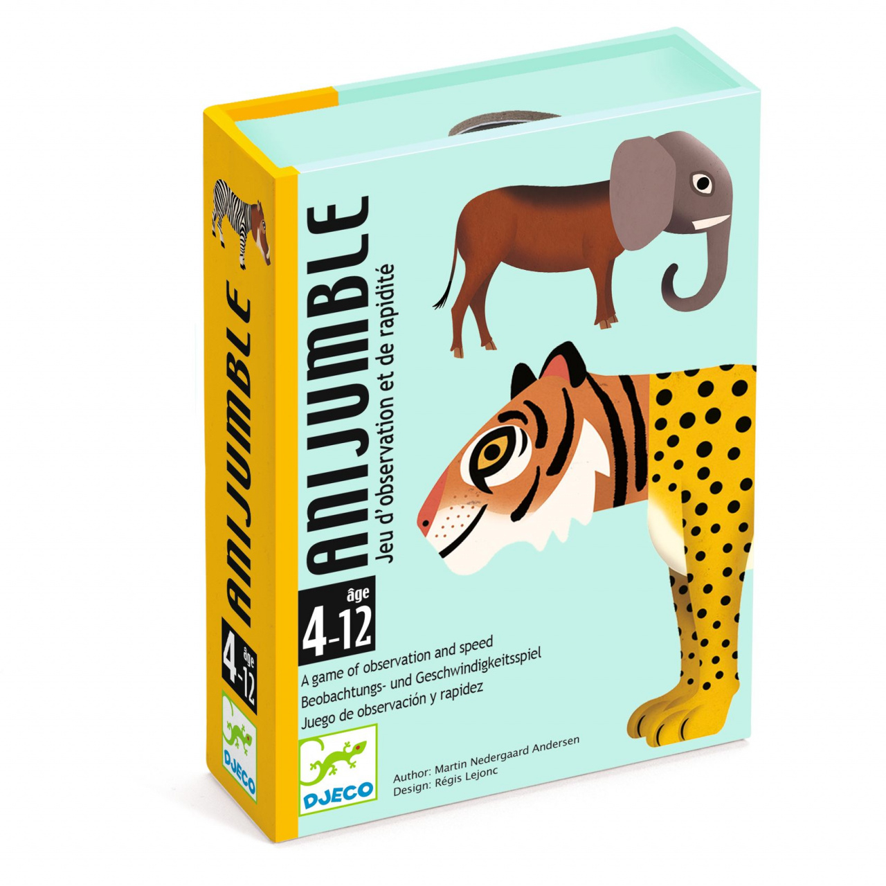 Joc de cărți Anijumble Un joc de observație și viteză pentru 2-5 jucători. Un om de știință nebun a creat o serie de fiare imaginare ciudate, fiecare cu capul unui animal și corpul altuia. Fii cel mai rapid jucător care reconstituie animalele reale. Carți durabile, de înaltă calitate. Cutie compactă, ușor de transportat. Conținut: 45 de cărți. Vârsta recomandată: 4 - 12 ani. Reguli de joc disponibile în 10 limbi. Confecționat din hârtie și carton certificate FSC®. Conform reglementărilor EN71&ASTM. AVERTISMENT: Contraindicat copiilor sub 3 ani. Se recomandă supravegherea copilului de către un adult în timpul jocului. Producător: Djeco, Franța.