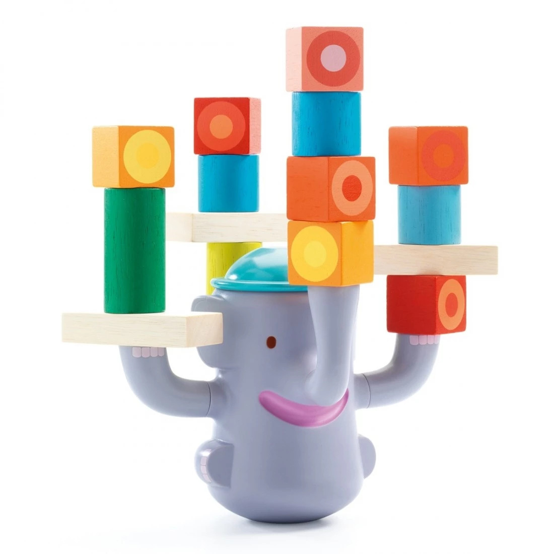 Joc de echilibru Bigboum Joc de dexteritate cu un elefant roly-poly și piese din lemn colorate, de forme diferite. Copiii stivuiesc piesele pe elefant, asigurându-se că sunt echilibrate. Atenție - o piesă în plus le vor face pe toate să cadă! Pentru dezvoltarea logicii și a mișcărilor de motricitate fină. Conținut: bază roly-poly în formă de elefant din plastic și 20 de piese din lemn. Vârsta recomandată: + 2 ani. Confecționat din lemnn și plastic. Conform reglementărilor EN71&ASTM. Certificate FSC®. AVERTISMENT: Se recomandă supravegherea cu atenție a copilului de către un adult în timpul jocului . Producător: Djeco, Franța