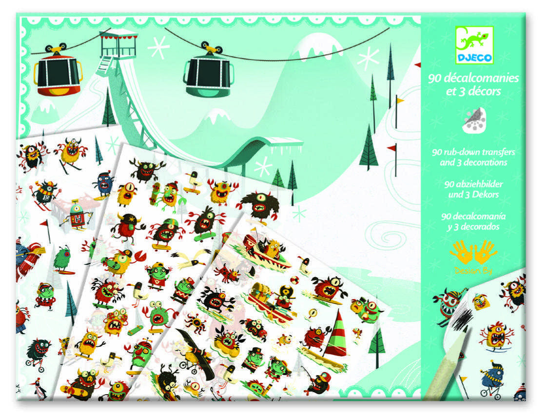 Scene Monstruleti sportivi Conține 90 de abțibilduri de poziționat pe 3 planșe ilustrate. Abțibildurile se răzuiesc cu ajutorul unui creion. Joc clasic reinventat de Djeco. Conține: 3 fundaluri tipărite (21 x 30 cm), 3 foi de transferuri = 90 de imagini de lipit. Vârsta recomandată: 4-8 ani. Confecționate din hârtie și carton certificate FSC®. AVERTISMENT: Contraindicat copiilor sub 3 ani, conține piese mici, pericol de sufocare. A se folosi sub directa supraveghere a unei persoane adulte. Producător: Djeco, Franța .