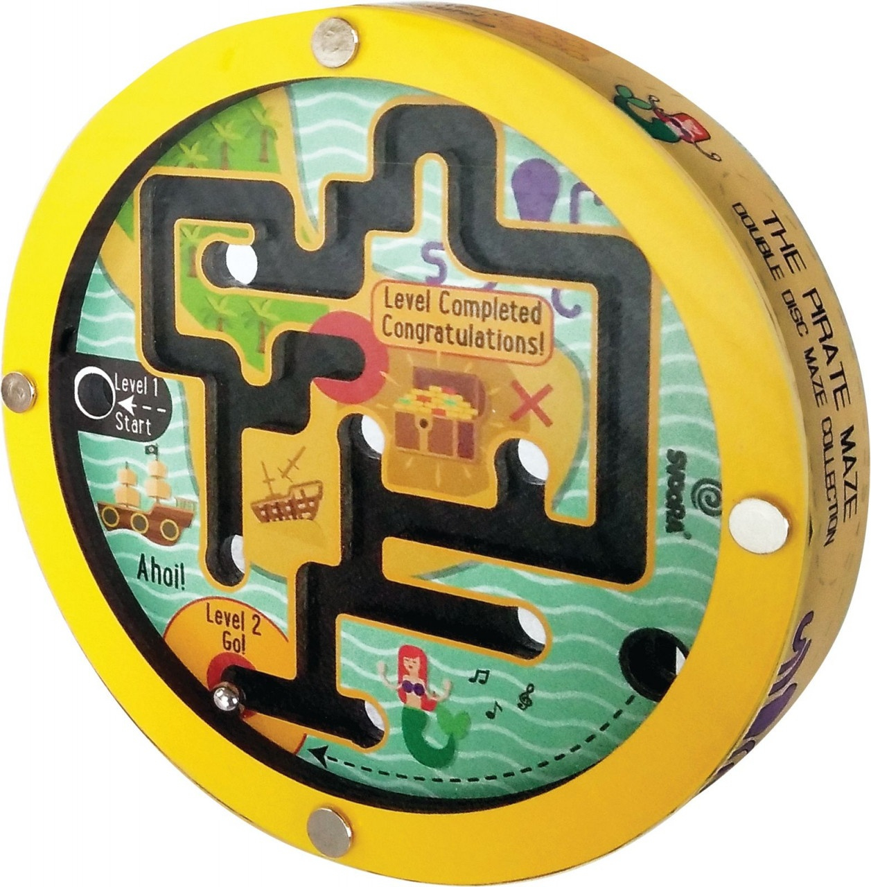 Joc de logica si indemanare Labirint dublu pirati 2 labirinturi într-unul singur! Fiecare disc conține două labirinturi diferite, câte unul pe fiecare parte. Urmați traseul, colectați elementele și treceți dintr-o parte în alta, pentru a finaliza misiunea. Două labirinturi diferite într-un singur joc, două nivele consecutive de completat, pentru o mai mare provocare și o explorare plină de imaginație și provocare! Dimensiune 11 × 11 × 2,2 cm Vârsta recomandată: + 6 ani. Fabricat din lemn. Conform standardelor EN71, ASTM. AVERTISMENT! Contraindicat copiilor sub 3 ani. A se folosi sub directa supraveghere a unei persoane adulte. Producător: Svoora, Grecia