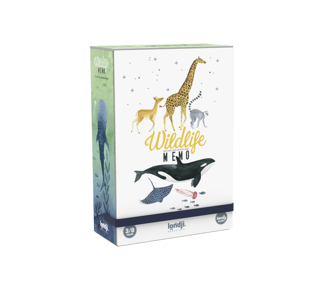 Joc de memorie Fauna salbatica Balene, girafe, flamingo, veverițe, pinguini... Descoperiți viața sălbatică cu acest joc de memorie pentru toate vârstele. Jocul constă în găsirea cât mai multor jetoane identice de animale printre animalele sălbatice. Se pot face până la șaisprezece perechi, cel care obține cele mai multe câștigă. Un joc care stimulează memoria și logica. Exersează abilitățile de observare, concentrarea și orientarea în spațiu. Introducerea conceptul de a lua decizii neimpulsive. Un joc clasic de memorie cu animale, de jucat cu întreaga familie. Conține: treizeci și două de piese cu animale sălbatice, instrucțiuni în 5 limbi. Ilustrații: Nathalie Ouederni Vârsta recomandată: +3 ani. Confecționat din hârtie FSC și carton reciclat. AVERTISMENT: Contraindicat copiilor sub 3 ani. Se recomandă supravegherea copilului de către un adult în timpul jocului. Produs in Spania, Catalonia de Londji.