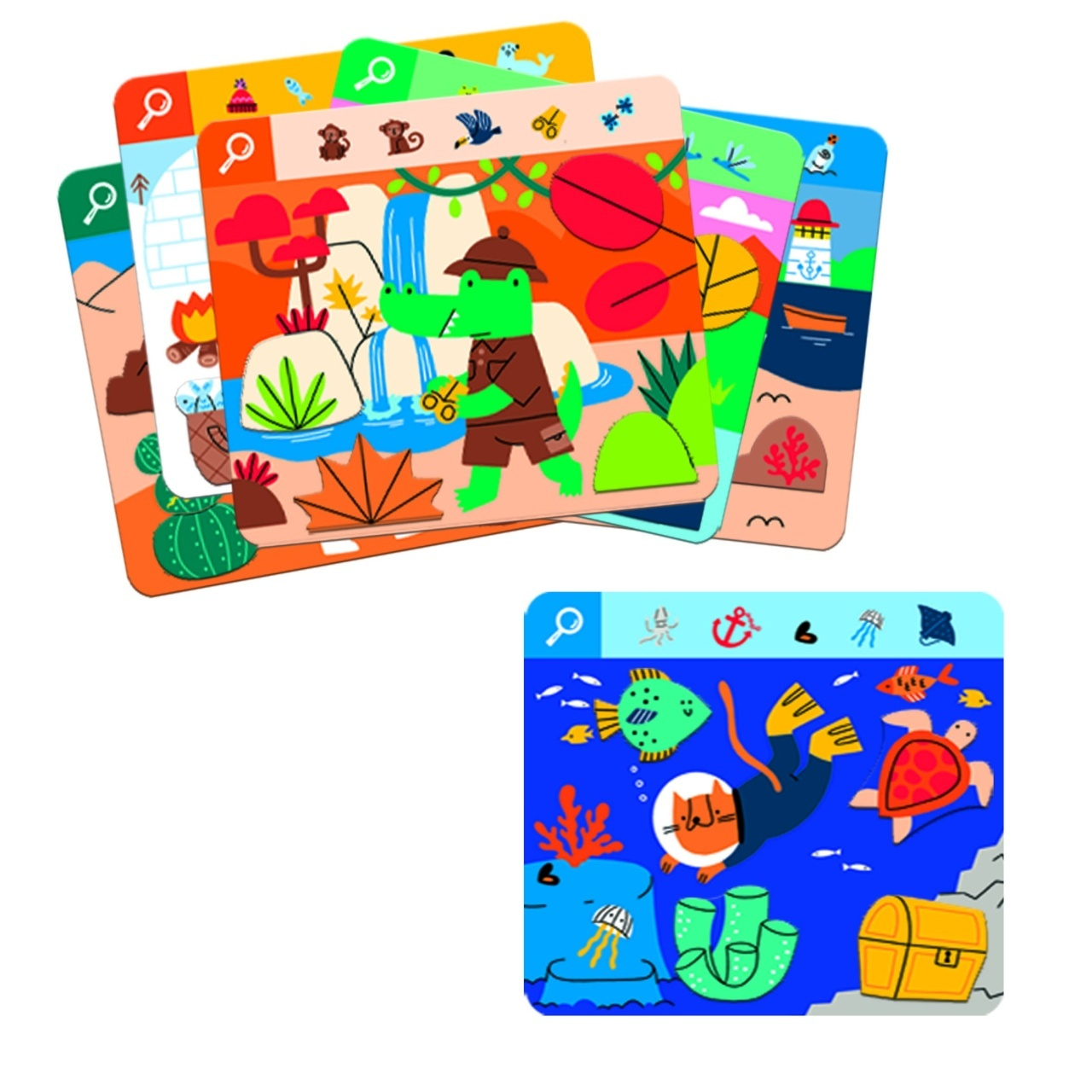 Primul joc „Caută și găsește” – Aventuri amuzante cu animale Joc interactiv și plin de surprize, pentru primele activități de observație ale copiilor! Cu 6 planșe viu colorate și elemente mobile, acest joc original transformă fiecare sesiune într-o aventură plină de acțiune și descoperiri. Imaginile „prind viață” la atingerea copiilor, iar cei mici își dezvoltă abilitățile de analiză, observare și coordonare într-un mod distractiv și intuitiv. Tema captivantă – călătoriile amuzante ale animalelor – face ca fiecare joc să fie o poveste nouă! Fiecare kit Eduludo extrem de educativ, se concentrează pe un proces de învățare specific pentru a ajuta copiii să-și dezvolte abilitățile. Conținut: 6 planșe cu elemente mobile și un set de instrucțiuni. Vârsta recomandată: 3 - 6 ani. Joc confecționat din hârtie și carton certificat FSC®, sigur pentru copii și prietenos cu mediul. Conform reglementărilor EN71&ASTM. AVERTISMENT: Contraindicat copiilor mai mici de 3 ani, conține piese mici, pericol de sufocare. A se folosi sub directa supraveghere a unei persoane adulte. Producă tor: D jeco, F ranța