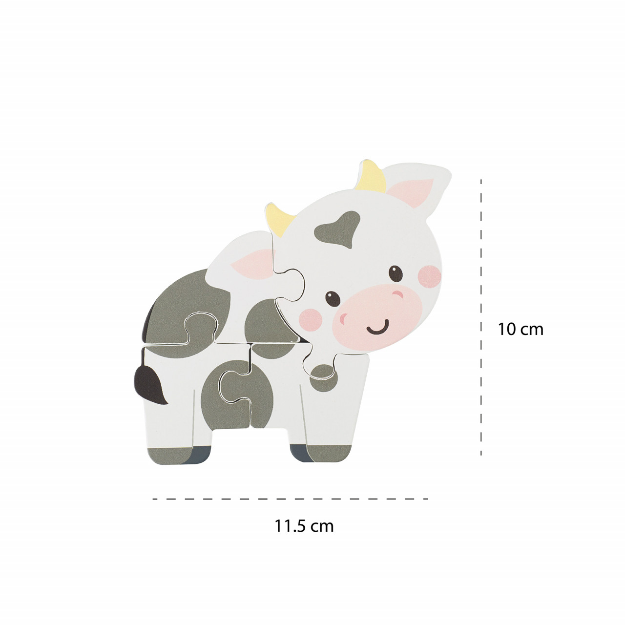 Puzzle văcuță din lemn Puzzle văcuță din lemn, ideal pentru a fi prins de mânuțele mici și distractiv de asamblat. Puzzle-ul finalizat este, de asemenea, excelent pentru joaca imagistică. Încurajează abilitățile motorii cheie, cum ar fi coordonarea mână-ochi și recunoașterea formelor. Dimensiune puzzle 11.5 x 10 cm. Vârsta recomandată: +12 luni. Confecționat din lemn FSC®, cu vopsele pe baza de apă. Ambalat în cutie de carton reciclabil. Conform reglementărilor EN71&ASTM. A se folosi sub directa supraveghere a unei persoane adulte. Produs în China pentru Orange Tree Toys, Anglia.