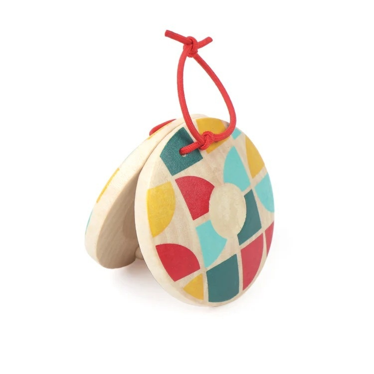 Castanieta din lemn Instrumente muzical simplu, dar atractiv, pentru a introduce copiii în lumea ritmului și a sunetelor, încurajând jocul activ și dezvoltarea simțului muzical. Dimensiune: 6 × 6 × 2.5 cm Vârsta recomandată: + 5 ani. Fabricat din lemn pictat. Conform standardelor EN71, ASTM. AVERTISMENT! Contraindicat copiilor sub 3 ani. A se folosi sub directa supraveghere a unei persoane adulte. Producător: Svoora, Grecia