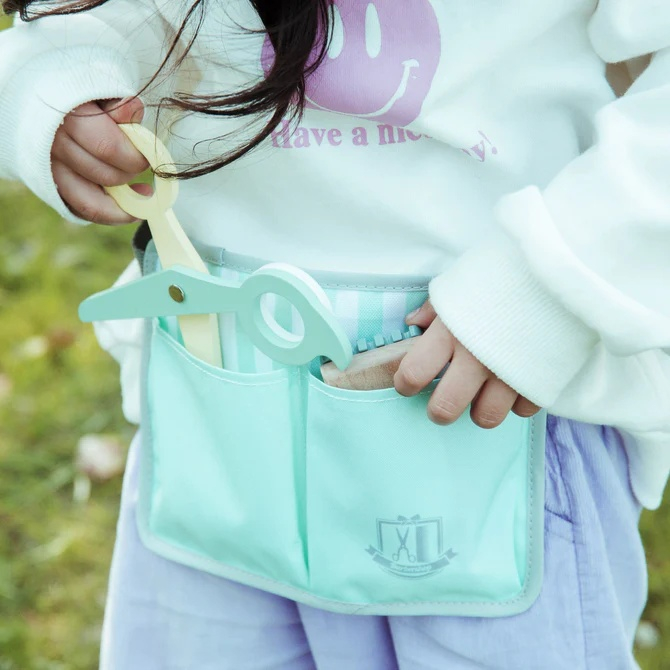 Joc de rol La coafor Set de coafură din lemn pentru copii cu 18 piese care sunt nelipsite din orice salon de coafură și frizerie. Conține: centură reglabilă pentru echipamente de frizerie, husă de protecție, foarfecă, placă pentru îndreptarea părului, oglindă, pieptene, uscător de păr etc. Set de joacă realist - copilul poate exersa ce înseamnă munca de frizer. Dezvoltă creativitatea copiilor, imaginația, gândirea, memoria, vocabularul și abilitățile motorii. Vârsta recomandată: +3 ani. Confecționat din lemn cu vopsele ecologice pe bază de apă. Conform EN71&ASTM cu certificare CE. AVERTISMENT: Contraindicat copiilor sub 3 ani! Se recomandă supravegherea copilului de către un adult în timpul jocului. Produs în China pentru UMU Toys, Cehia.