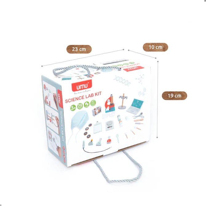 Joc de rol Laborator de cercetare Setul de laborator științific din lemn pentru copii conține 29 de piese de echipament de laborator - microscop, flacoane, forceps, cântar digital, notebook etc. Este cu adevărat funcțional - se poate focaliza microscopul după cum este necesar, se pot înlocui probele care urmează să fie examinate, se deschide capacul laptopului etc. Setul include, de asemenea, ochelari de protecție și o bonetă medicală pentru a se asigura că lucrul cu probele este "fără contaminare". Cu acest laborator de cercetare realist, copiii vor iubi cu adevărat știința, iar preșcolarul va deveni el însuși un mic chimist sau cercetător. Dezvoltă creativitatea copiilor, imaginația, gândirea, memoria, limba și abilitățile motorii (coordonarea mână-ochi). Continut: 29 piese de echipament. Vârsta recomandată: +3 ani. Confecționat din lemn cu vopsele ecologice pe bază de apă, textil, plastic. Conform EN71&ASTM cu certificare CE. AVERTISMENT: Contraindicat copiilor sub 3 ani! Se recomandă supravegherea copilului de către un adult în timpul jocului. Produs în China pentru UMU Toys, Cehia.
