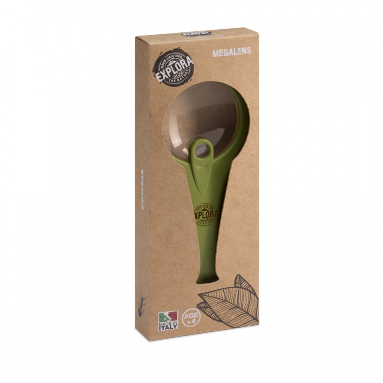 Lupa Explora Lupă care conține o a doua lupă de mare putere (x 4 și x 8). Mânerul se deschide ca o busolă, permițând utilizarea sa pe un blat de lucru cu mâinile libere. În manșon este inserată o pensetă extractibilă, ceea ce face posibilă manipularea cu ușurință a obiectelor de dimensiuni mici. Dimensiune lupă: 14 x 6 x 1 cm. Dimensiune lentila mare 6 cm, dimensiune lentila mica 1.3 cm. Vârsta recomandată: + 4 ani. Fabricat din plastic ABS (rezistent la impact, la temperaturi ridicate și la contactul cu substanțe chimice) și plexiglas. AVERTISMENT: Contraindicat copiilor sub 3 ani. A se utiliza sub supravegherea unei persoane adulte. Produs de Navir, Italia.