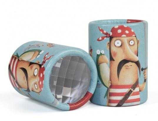Mini-caleidoscop Pirați Jucărie optică, descompune şi multiplică imaginea în mii de bucăţele. Descoperă lumea din jurul tău descompusă și recompusă în bucățele mici! O lentilă tip ochi de muscă cu ilustrație pirați. Un mini caleidoscop ideal pentru a fi luat în excursii și a explora natura. Vârsta recomandată: 5-103 ani. Confecționat din carton reciclat, lentila din plastic Conform reglementărilor EN71&ASTM. AVERTISMENT: Contraindicat copiilor sub 3 ani, conține piese mici, pericol de sufocare. A se utiliza sub directa supraveghere a unui adult. Îndepărtaţi eticheta înainte de a oferi jucăria copilului. Producător: Londji, Spania. Proiectat și fabricat în Europa.