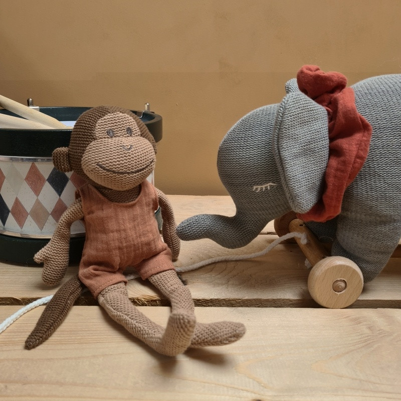 Paulo este o maimuțică adorabilă din bumbac tricotat moale, ușoară și plăcută la atingere. Cu coada, picioarele și brațele sale lungi, este ușor de prins cu mânuța mică și poate deveni însoțitorul de nedespărțit al copilului. La interior are un clopoțel care face un sunet plăcut și discret. Dimensiune 32 cm. Lavabilă în mașina de spălat la 30 o C. Vârsta recomandată: +3 luni. Confecţionată din bumbac cu umplutura sintetica. AVERTISMENT! A se folosi sub directa supraveghere a unei persoane adulte. Producător: Egmont Toys, Belgia.