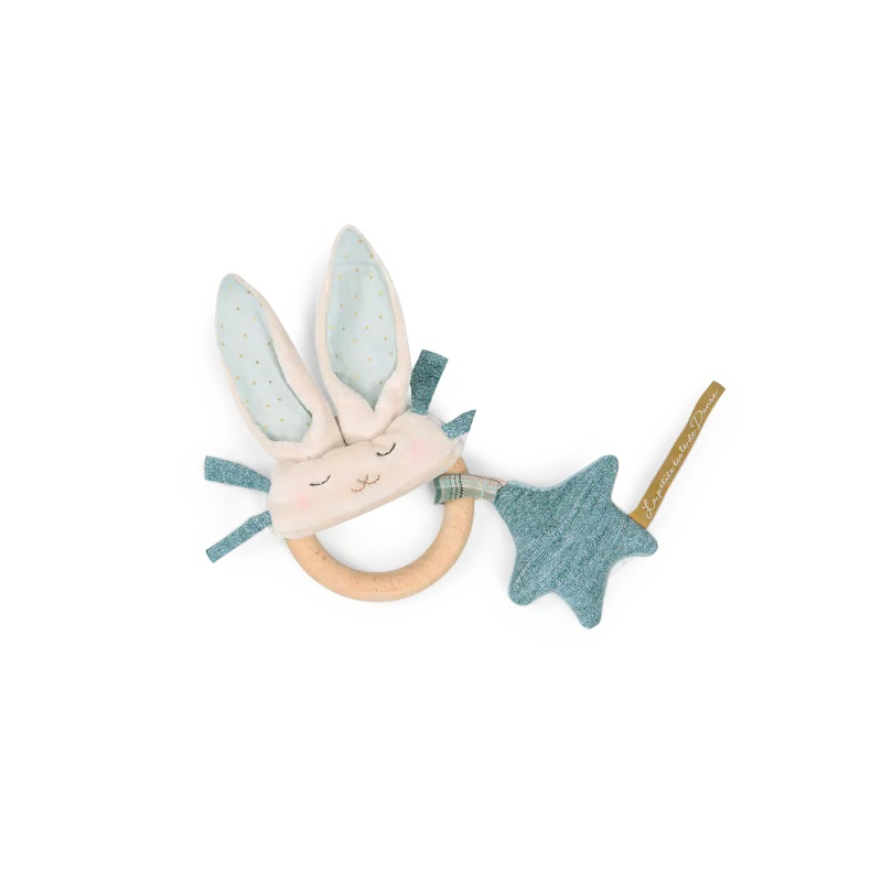Zornaitoare cu inel de lemn Iepuras Zornăitoare din colecția La Petite École de Danse de la Moulin Roty, pentru stimularea simțurilor bebelușului. Corpul moale din bumbac, inelul natural din lemn și sunetele captivante de clopoței și hârtie foșnitoare invită la descoperiri tactile, auditive și vizuale, sprijinind dezvoltarea senzorială încă din primele luni. Datorită sistemului cu scai, se poate atașa ușor la cărucior, pătuț sau scaun auto, făcând plimbările mai distractive și interactive. Designul atent previne pierderea jucăriei în mișcare. Dimensiuni: 25 cm Vârsta recomandată: +0 luni. Materiale: Inel de fag (lemn natural), bumbac/polyester/elastan ( elementele textile). Fibre OEKO-TEX® garantând siguranță pentru pielea sensibilă. Instrucțiuni de intreținere: Se spală la suprafață. AVERTISMENT: A se folosi strict sub supravegherea unei persoane adulte. Producător Moulin Roty, Franța.