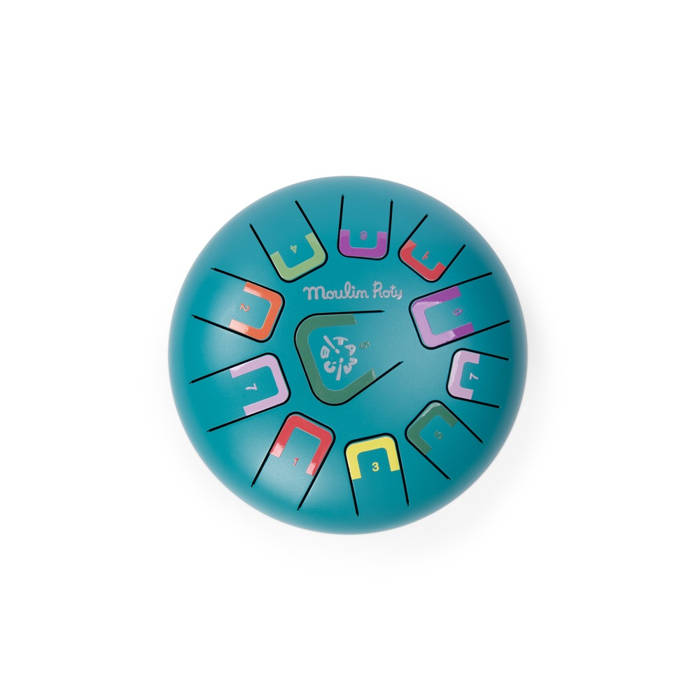 Toba metalica In jungla Un instrument excepțional pentru a introduce copiii în lumea fascinantă instrumentelor de percuție. 11 note codificate prin culori și numere pentru a fi lovite cu mâinile, vârful degetelor sau cu bețe de tobe. Include un saculeț textil pentru transport și depozitare, un pliant cu partituri, 2 bețe de tobe și 4 vârfuri pentru degete. Dimensiune tobă: 20 x 11 x 20 cm. Vârsta recomandată: + 3 ani. Se curăță cu o lavetă moale umezită. Material: aliaj din oțel-carbon, cauciuc, lemn de fag, plastic ABS. Producător Moulin Roty, Franța.
