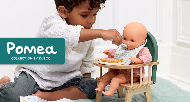 Bebelusul Pistache Cu ochi frumoși căprui și o față angelică, aceasta păpușă este potrivita pentru copii de la 18 luni. Este ușoară, iar dimensiunea sa (32 cm) se potrivește perfect pentru mânuțe mici. Corpul păpușii bebeluș este din material textil sub forma unui body cu dungi. Este flexibil la fel ca un bebelus adevarat. Fața, brațele și picioarele sale sunt realizate din vinil foarte moale, care este plăcut la atingere. Ochii se închid când este culcat pe spate. Această păpușă este îmbrăcată cu rochiță și pe cap are o banderolă din bumbac din tifon dublu. O întreagă colecție de haine rafinate și la modă - POMEA, de explorat pentru a îmbrăca această păpușă. Hăinuțe largi pentru îmbrăcare ușoară. Capul se întoarce de la stânga la dreapta. Umplutura corpului 100% fibra reciclata. Vinilul nu are miros. Se spală la masină la 30°. Conținut: păpușă de 32 cm (corp din material textil și cap, brațe și picioare de vinil), rochiță și banderolă. Vârsta recomandată: +18 luni. AVERTISMENT: Contraindicat copiilor sub 18 luni. A se utiliza sub directa supraveghere a unui adult. Confecționată din vinil și bumbac. Producător: Djeco, Franța