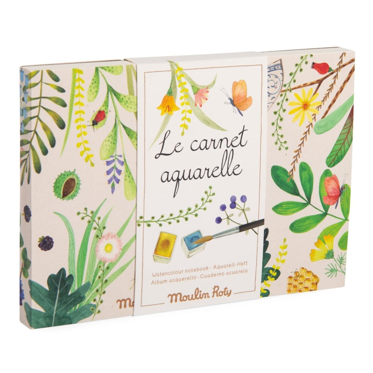 Carnet Aquarelle – Le Jardin du Moulin | Carnet pentru pictură cu acuarele 🌼🎨 Un carnet delicat și creativ pentru artiști care iubesc pictura în acuarelă! Ilustrațiile botanice inspirate din grădină așteaptă să prindă culoare cu ajutorul celor 10 pagini speciale. Pentru momente de relaxare si inspiratie artistica! 🖌️ Ce conține carnetul: coperta din carton gros ilustrata cu motive botanice 30 foi densitate 300g, din 100% bumbac, dimensiune 21 x 15 cm carton special pentru pictură – texturat și gros Activitate relaxanta și educativă: Încurajează expresivitatea artistică și răbdarea Pentru activități in casă sau in aer liber Poate fi completat cu acuarele clasice sau pensule cu rezervor 🌱 Hârtie certificată FSC® – prietenoasă cu mediul Articol de papetarie. Nu este jucarie. Producător: Moulin Roty, Franța 🇫🇷
