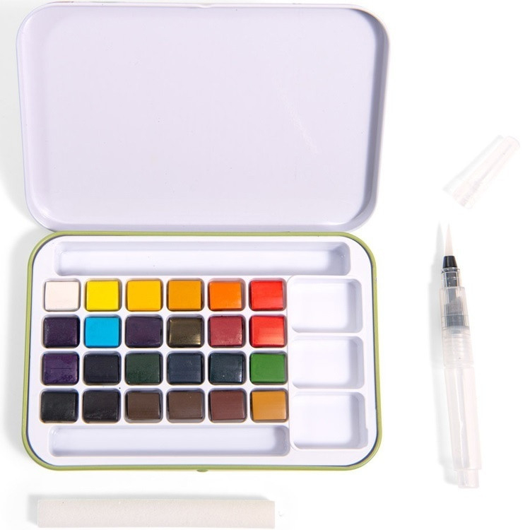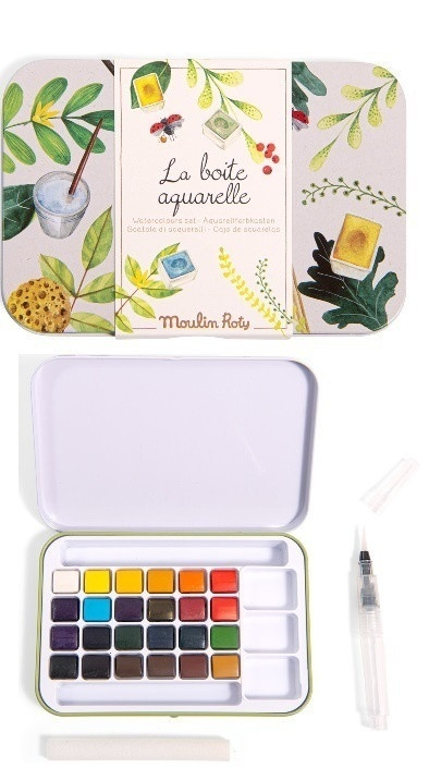 Cutie metalica cu 24 de acuarele Set cu 24 de acuarele din colecția Le Jardin du Moulin într-o selecție de culori naturale, prezentate într-o cutie metalică ilustrată cu motive botanice. Un set creativ și versatil pentru copii, în stilul francez fermecător și capricios pentru care Moulin Roty este renumit! Copiii se vor distra de minune pictând, explorând diferite tehnici și descoperind natura, de-a lungul anotimpurilor. Conține: 24 cupe de acuarelă, pensulă cu rezervor de apă, burete, cutie metalică ce poate fi folosită ca o paletă pentru a crea amestecuri de culori. Să le oferim copiilor toate instrumentele necesare pentru a aprofunda cunoștințele despre natură și mediu! Ideală pentru zilele ploioase. Dimensiune cutie 14 x 10 cm. Vârsta recomandată: +3 ani AVERTISMENT: Contraindicat copiilor sub 3 ani. Poate conține părți mici. Se recomandă supravegherea copilului de către un adult în timpul jocului. Citiți cu atenție eticheta produsului înainte de a înmâna jucăria copilului. Fabricate în China pentru Moulin Roty, Franța